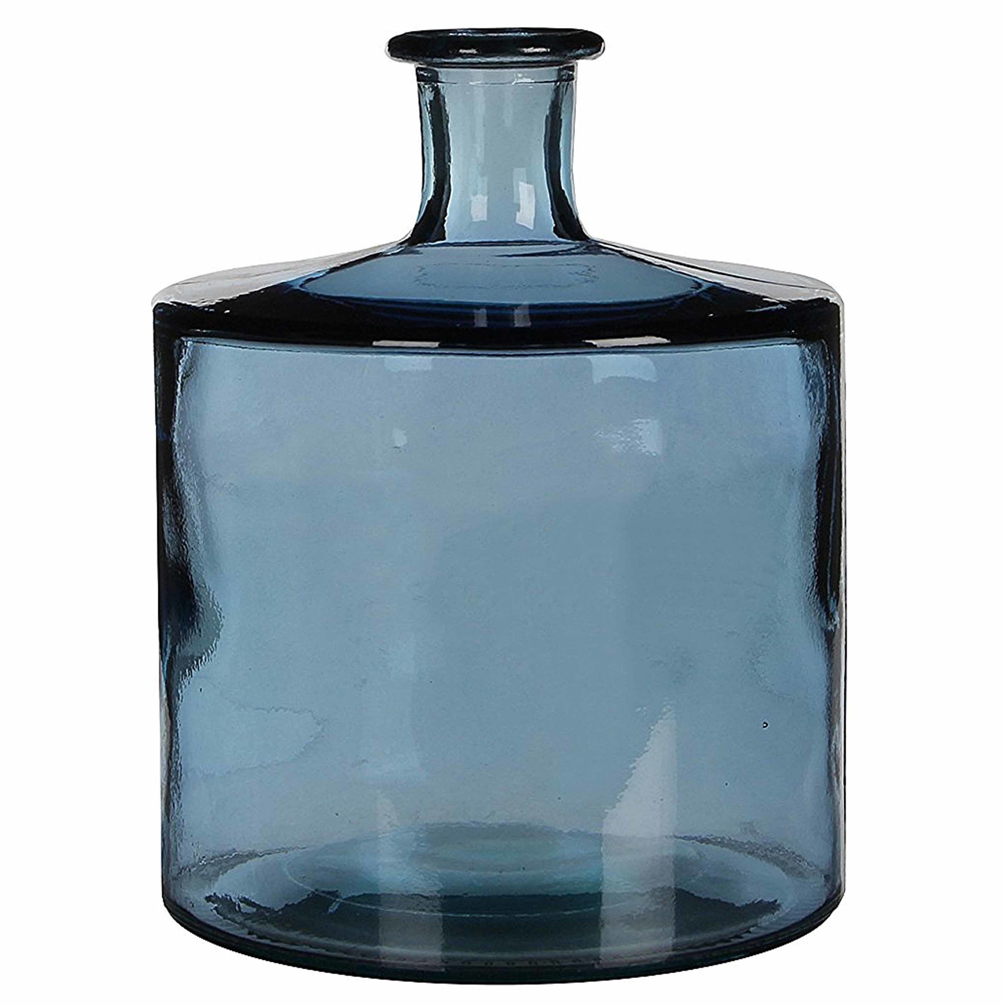Deze Guan fles heeft blauw glas en een hoogte van 44cm en een diameter van 35cm.