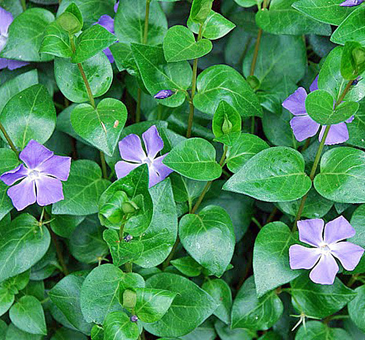 Dit is de snelgroeiende grootbladige Vinca, een ideale en populaire groenblijvende bodembedekker. Uitstekend te gebruiken als onderbeplanting op beschaduwde plekken. Is goed winterhard. Boven het glimmende blad komen in het voorjaar blauwe bloemetjes